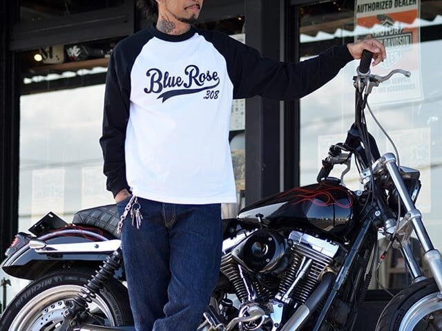 【BLUE ROSE.308/ブルーローズ.308】の「Crew Neck Raglan L/S Tee"Cursive Logo"/クルーネックラグランロングスリーブTee"カーシブロゴ"」になります。