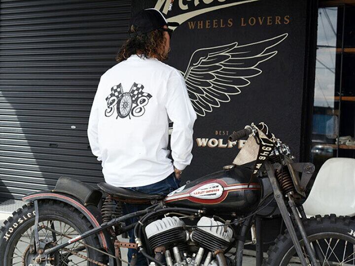 【BLUE ROSE.308/ブルーローズ.308】の 「High Quality CrewNeck L/S Tee"Wheel Flag"/ハイクオリティークルーネックロングスリーブTee"ホイールフラッグ"」になります。